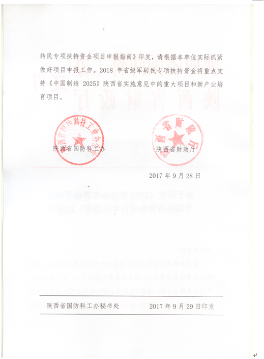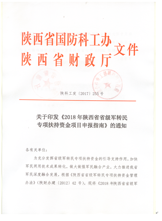 附件:1.《2018年陕西省省级军转民专项扶持资金项目申请表》;