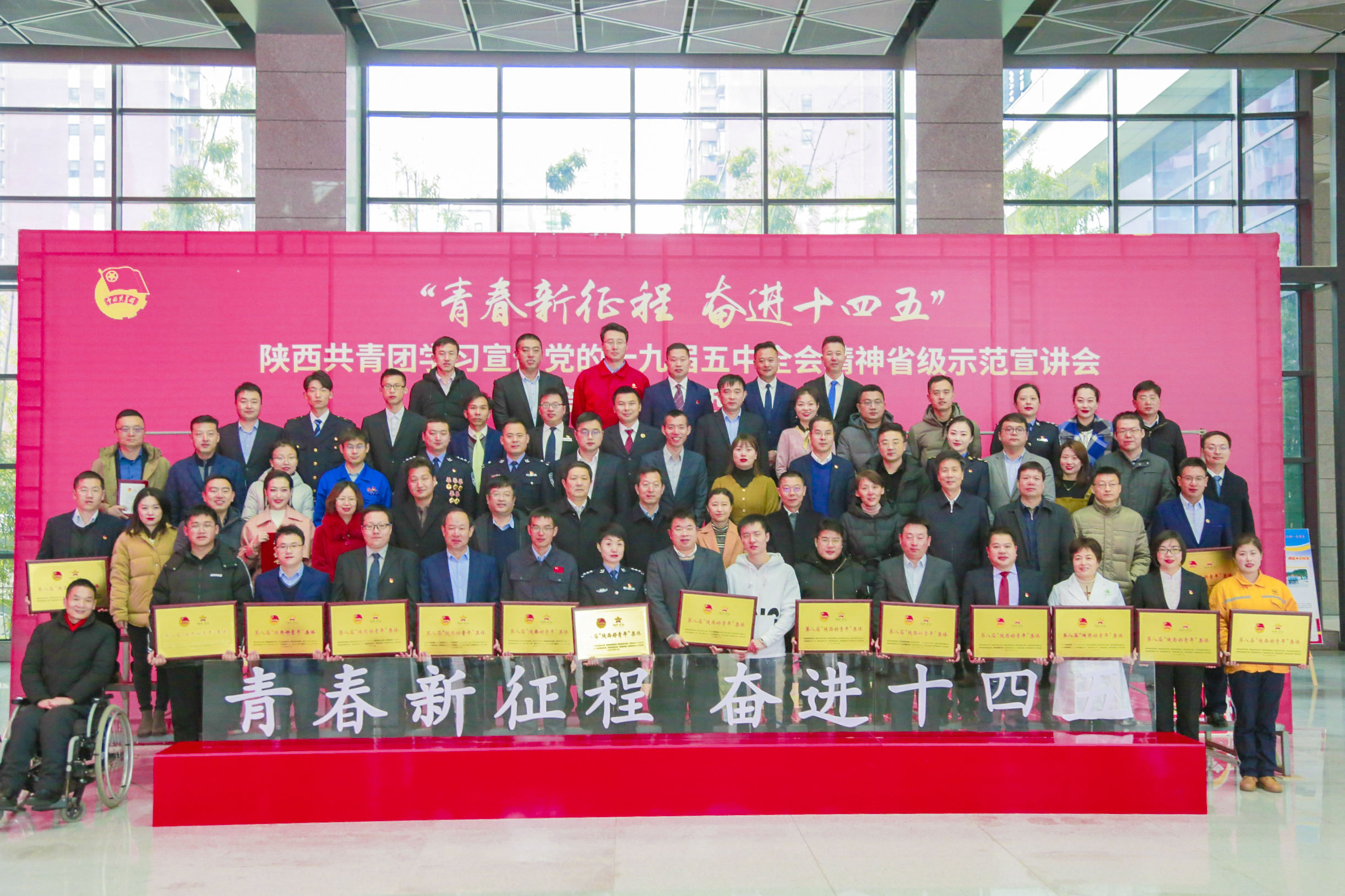 12月18日,由团省委、省国防科工办等11家单位共同举办的第八届“‘中国梦•青年志’--寻找身边的陕西好青年”颁奖仪式在西安中联西北设计院举行。“寻找身边的陕西好青年”活动旨在寻找、树立、宣传一批模范践行社会主义核心价值观、带头传播正能量的身边典型,发挥先进典型示范引领和辐射带动作用,引领全省广大青年争做向上向善好青年。