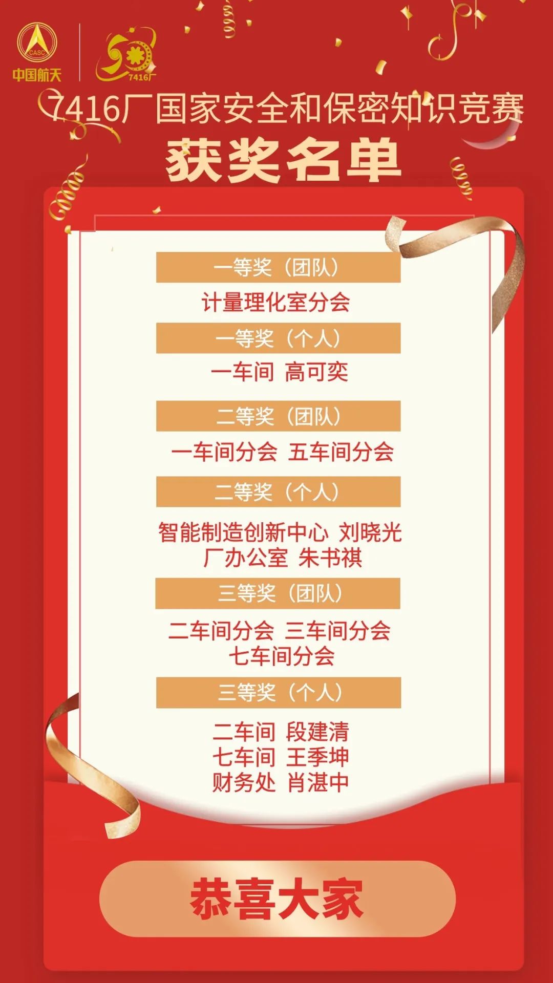 在2022年第7个“4.15”全民国家安全教育日和第34个全国保密宣传月之际,为强化工厂国家安全和保密宣传教育,切实提升全员国家安全和保密意识,7416厂通过多种形式营造国家安全和保密的浓厚氛围,举办“一站到底”个人挑战赛、团队知识竞赛、保密故事大家讲等一系列活动,提升基础管理,强化红线意识,扎实落实总体国家安全观!