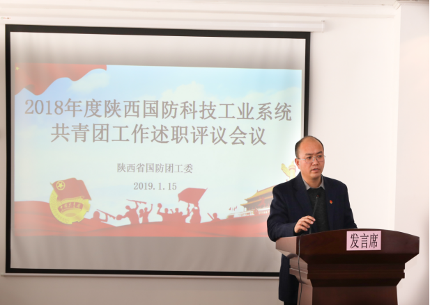 2019年1月15日,陕西国防科技工业系统2018年度共青团工作首届述职评议会议在西安举行。省国防科工办王伟同志、团陕西省委青年发展部部长李宗际参会并指导。全系统团委书记、省十三次团代会代表及优秀青年代表120余人参加,12个基层单位团委书记做了年度述职报告。