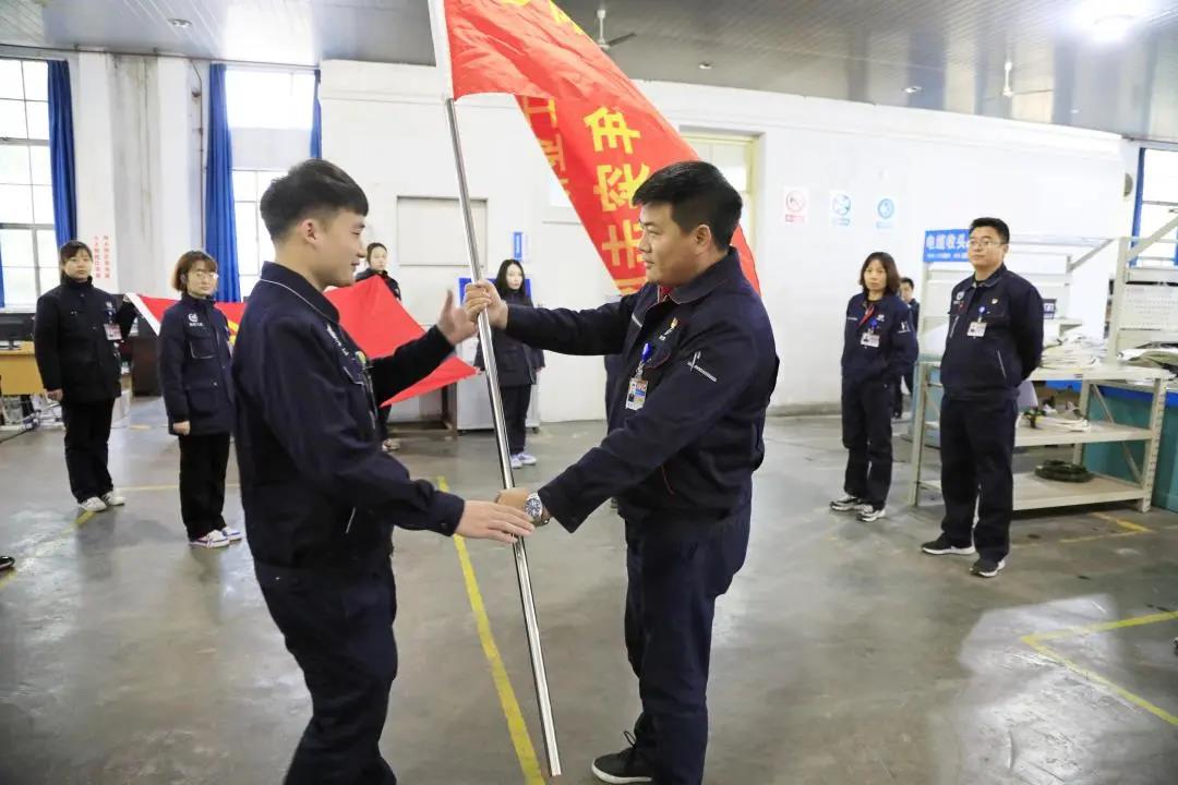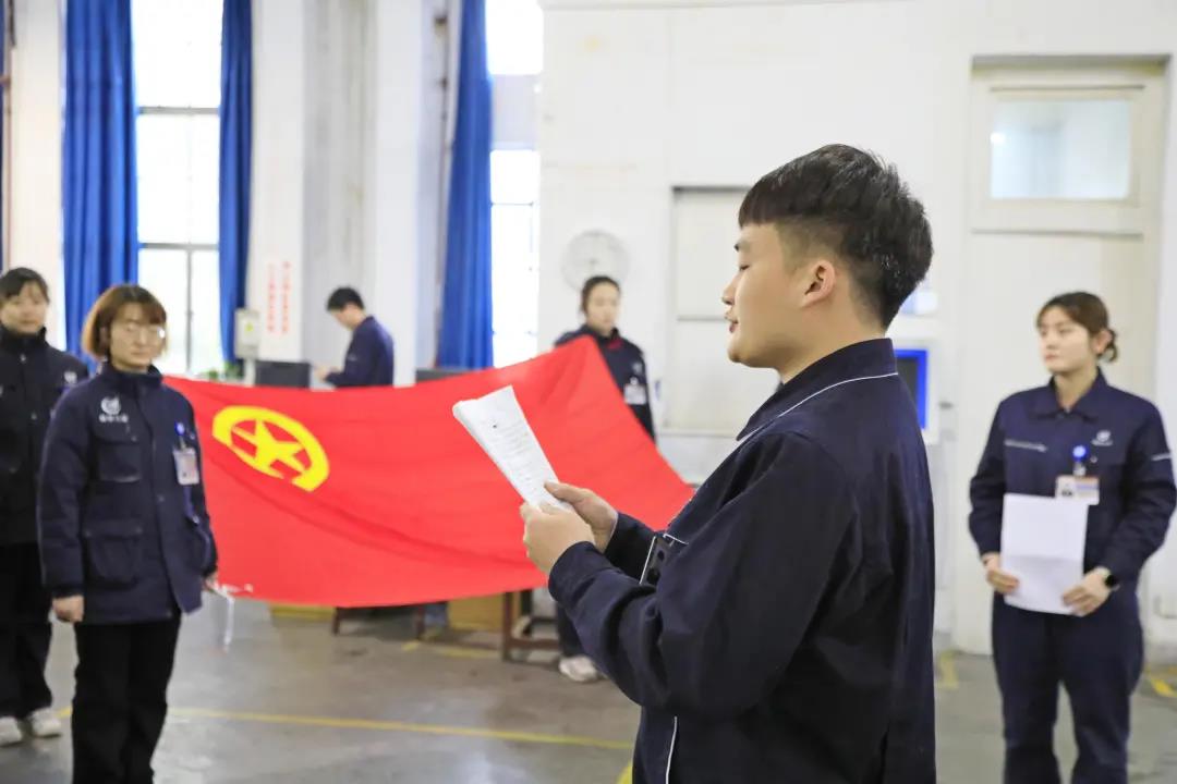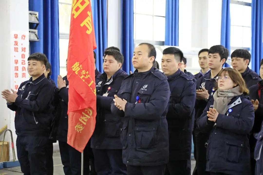接过队旗后,突击队队长表态发言,他说:“岁末年初,生产任务依然繁重,我们的队员中还有积极响应倡议就地过年的外地职工,所有突击队员将不负重望、不辱使命,充分发扬青年人能吃苦、敢拼搏的精神,克服一切困难,在生产任务攻坚中展现青年人的风采。”